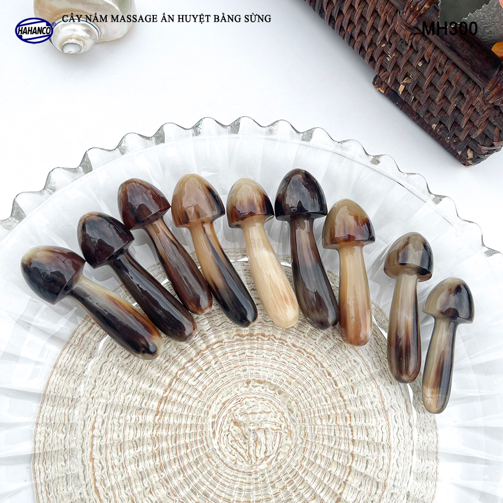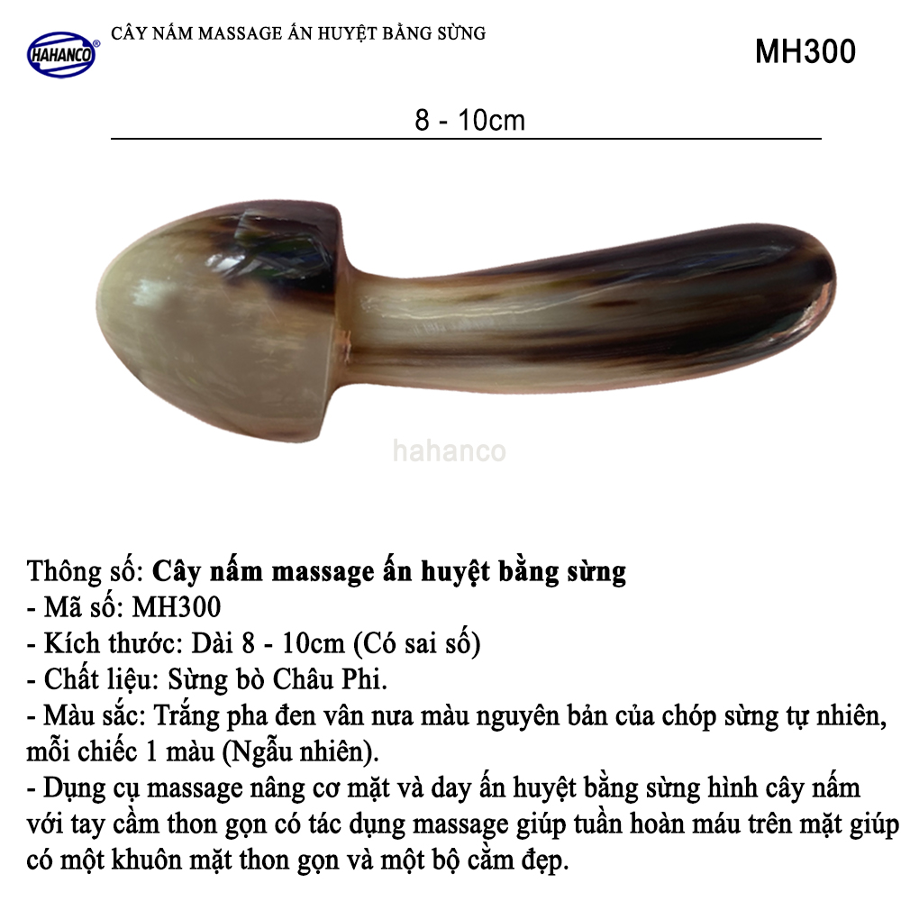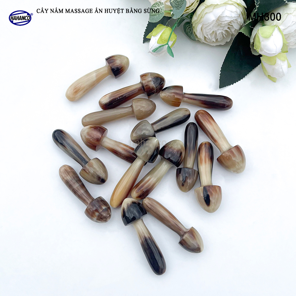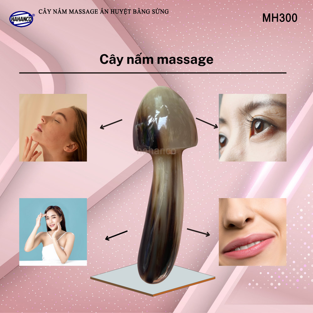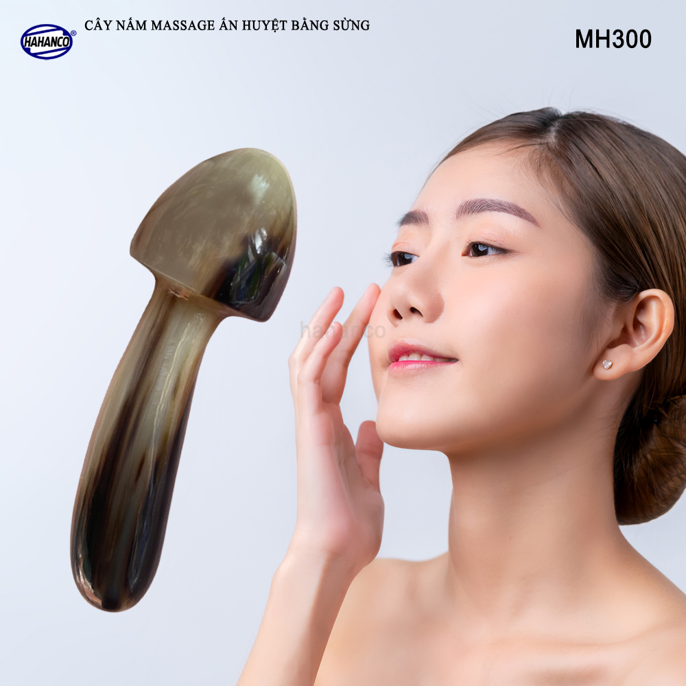 - Dụng cụ mát xa nâng cơ mặt và day ấn huyệt bằng sừng hình cây nấm với tay cầm thon gọn, có tác dụng massage giúp tuần hoàn máu trên mặt, có một khuôn mặt thon nhỏ và một bộ cằm đẹp. Là phương pháp đơn giản giúp phái đẹp có được làn da mịn màng, sáng hồng và không nếp nhăn.