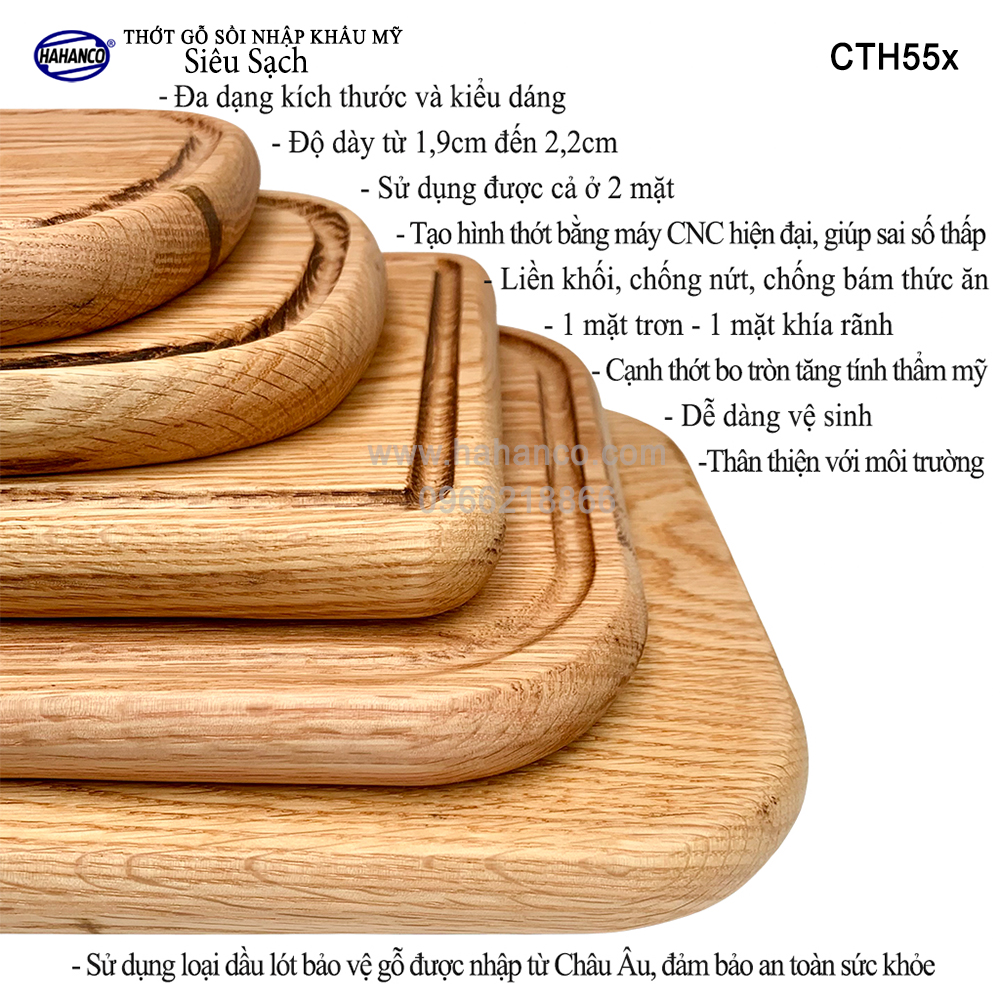 - Loại thớt này được CTy HAHANCO sản xuất chủ yếu xuất khẩu sang Nhật và Châu Âu, các đường nét và chi tiết được làm chau chuốt rất đẹp. Sử dụng loại dầu lót bảo vệ gỗ được nhập từ Châu Âu, đảm bảo an toàn thực phẩm, đủ tiêu chuẩn xuất Châu Âu, Mỹ, Nhật. Nên có giá thành cao hơn các loại thớt dùng sơn lót giá rẻ.