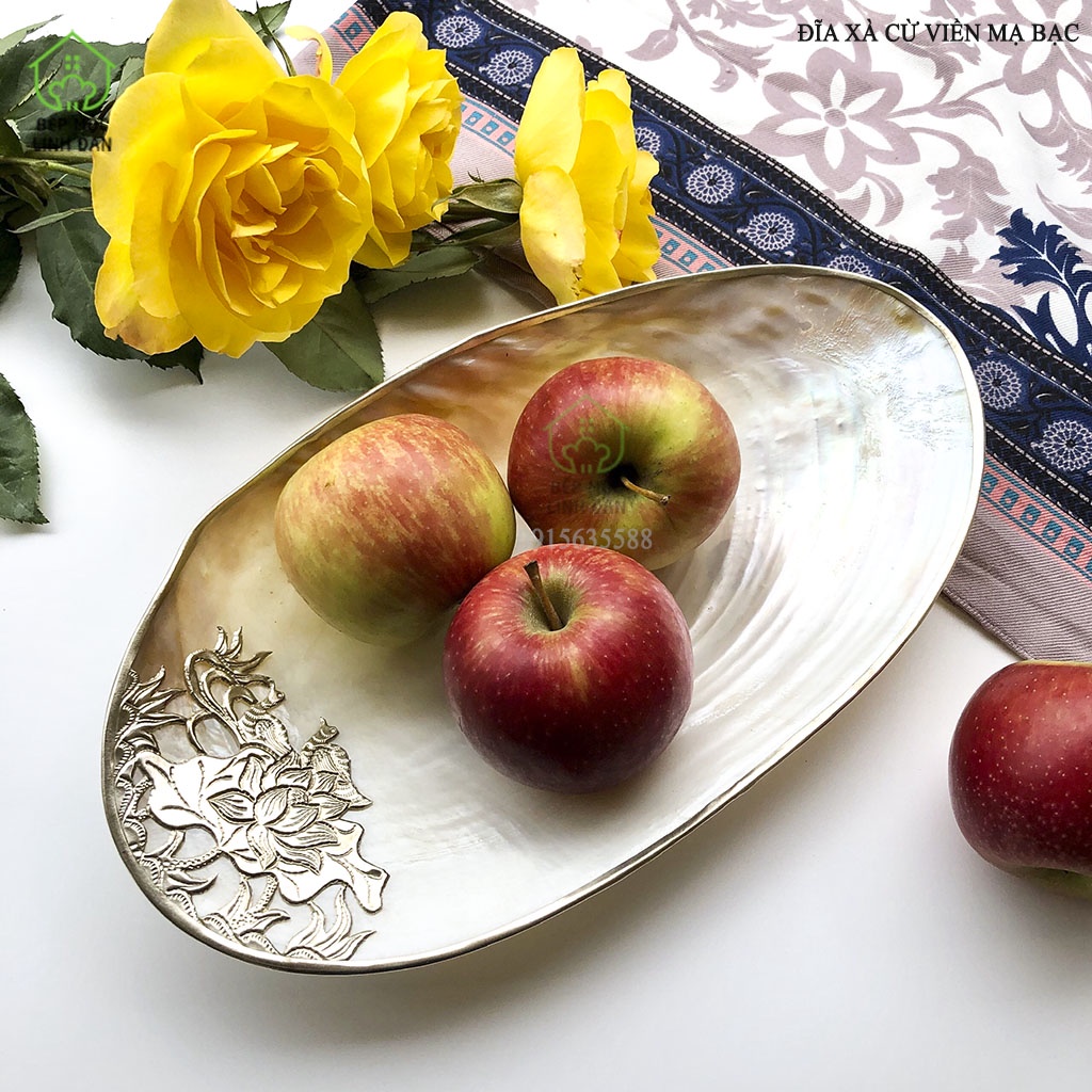 Đĩa Trai viền bạc hoa sen 26-28cm (CTH578-Sen)