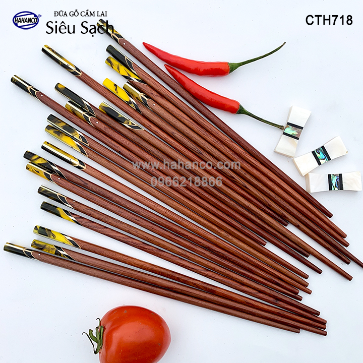 - Mã Số: CTH718 (đũa tròn, đầu đũa được gắn cẩn thạch họa tiết vân vàng, sang trọng trên bàn ăn) để mộc