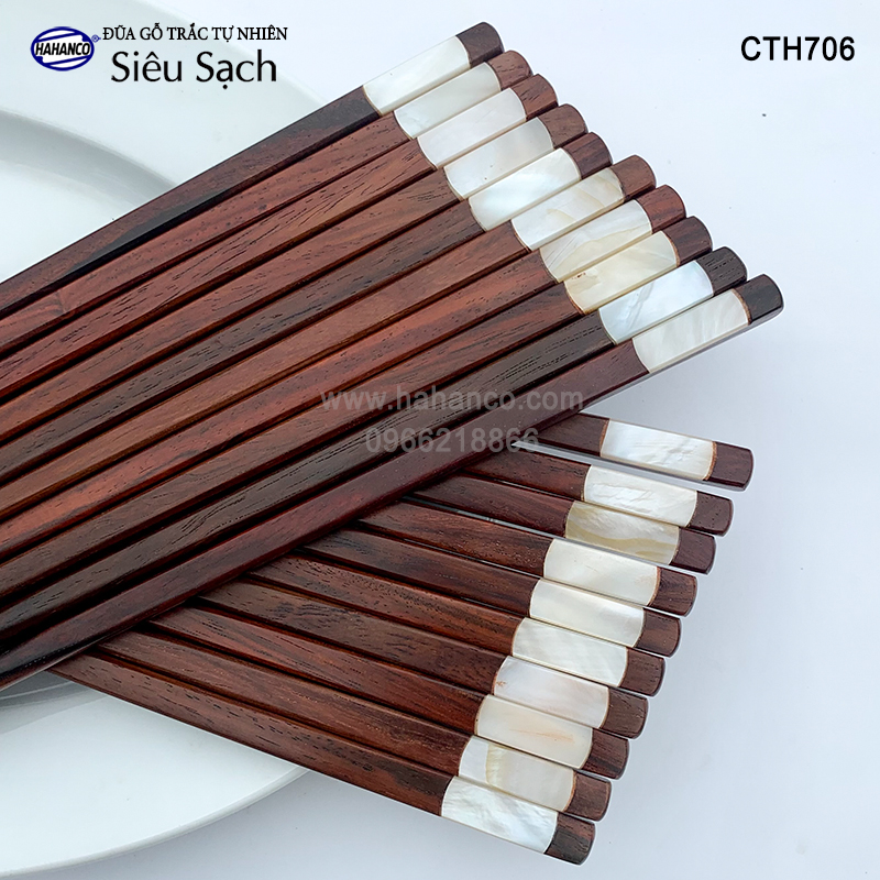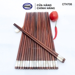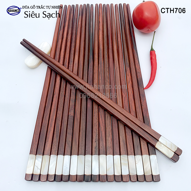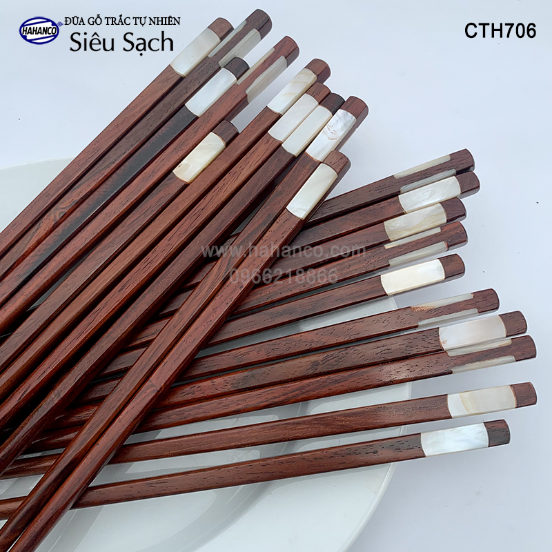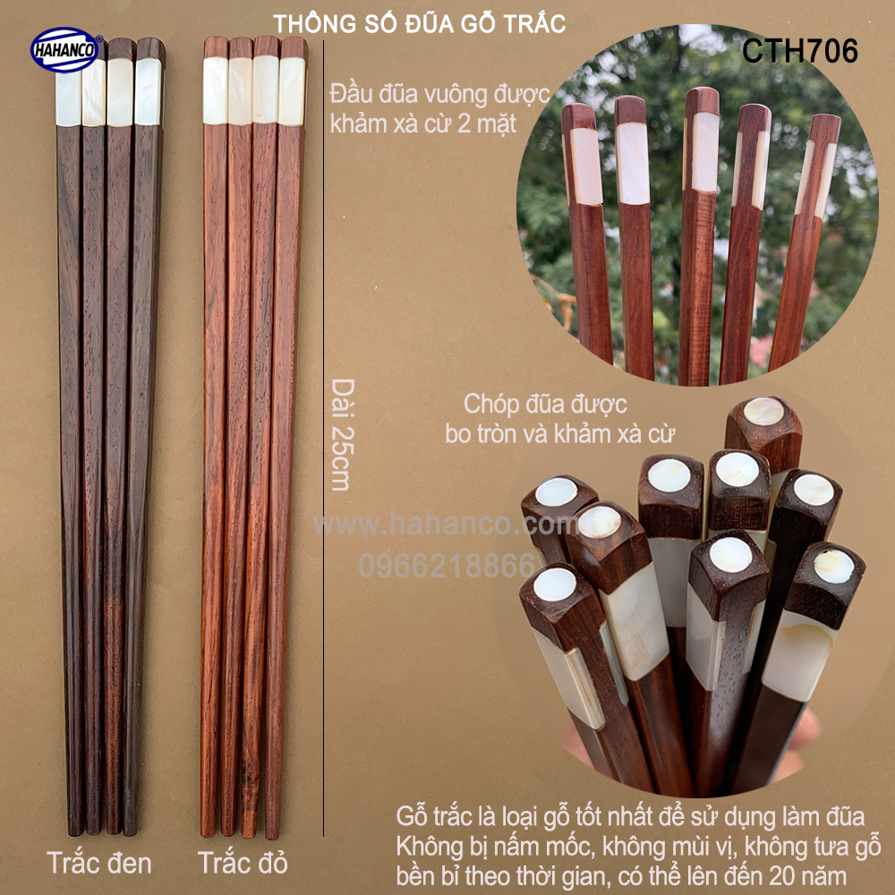✔ Đũa gỗ Trắc (gỗ quý tự nhiên) đầu đũa được khảm 2 mặt xà cừ.