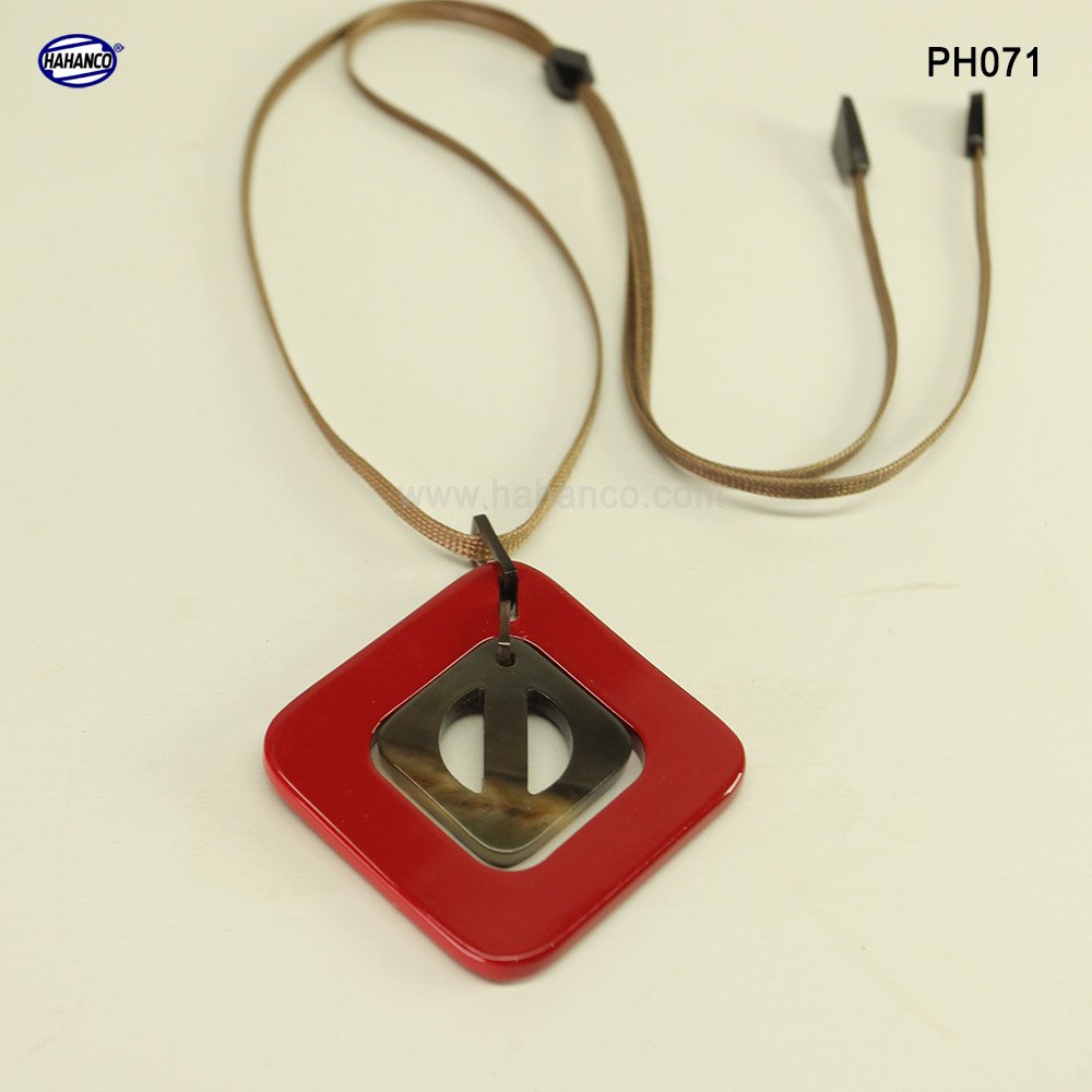 Mặt dây vòng cổ, được làm bằng sừng và sơn mài lên bề mặt.
