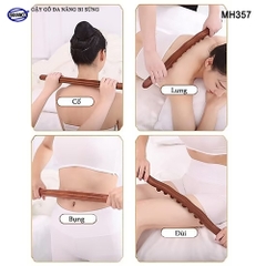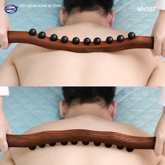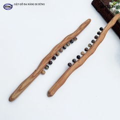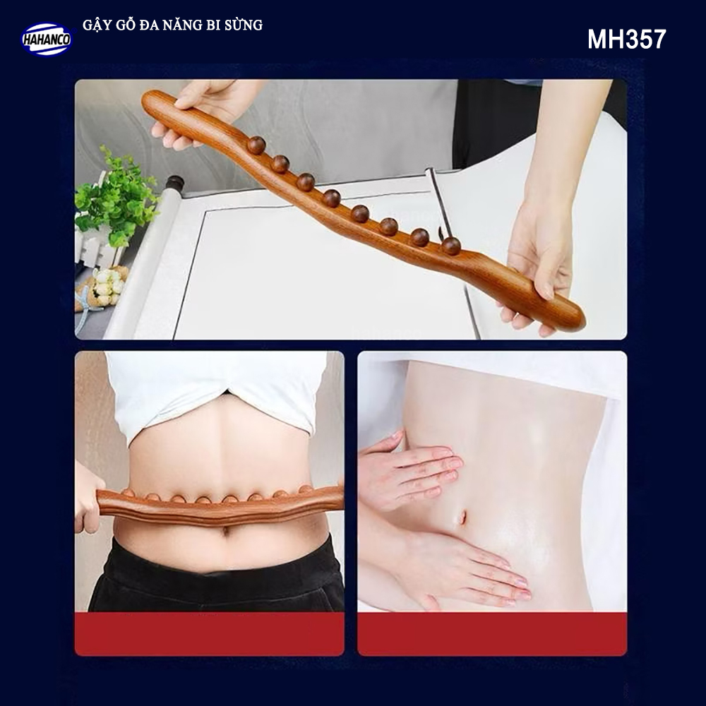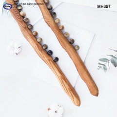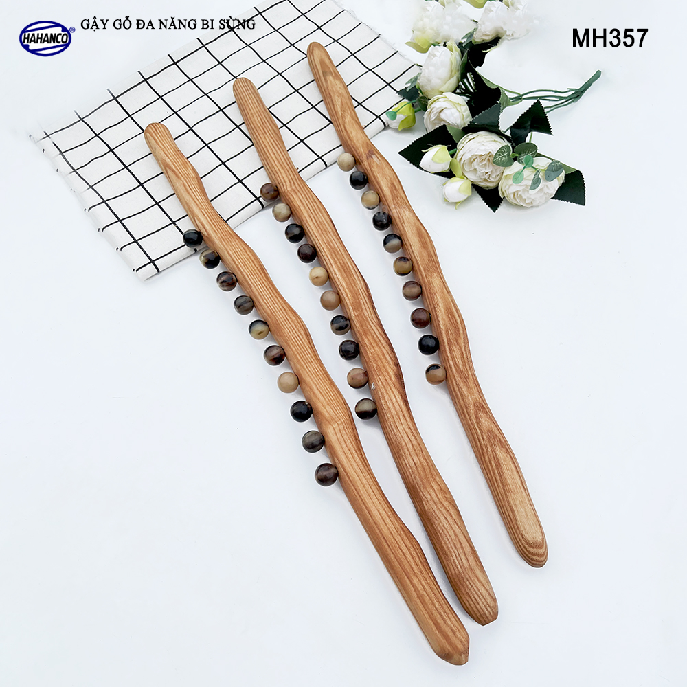 Được thiết kế thân gậy làn từ gỗ Tần Bì với những hạt bi sừng bò, trâu có tác dụng massage các huyệt đạo dọc theo phần cơ thể được tác động, tăng tính đàn hồi cho cơ, giúp thư giãn dây thần kinh / huyệt đạo tại vị trí massage (lăn), từ đó hỗ trợ giảm căng thẳng mệt mỏi.