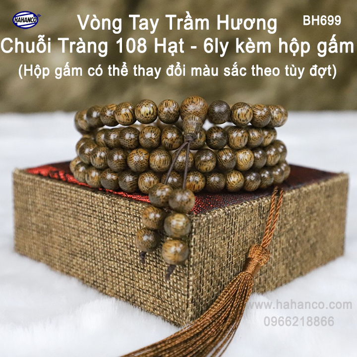 Vòng tay Trầm Hương chuỗi tràng 108 hạt 6ly BH699-6+BH600